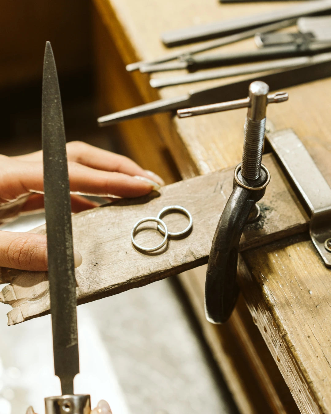 日本でも人気のワークショップでは、指輪のワックス原型を自分の手で削って形にしていきます。つまり、ロストワックスは思ったより身近な技法。自分の指の感覚で決める厚みやエッジ、ほんの少しの非対称——その「わたしらしさ」まで最終形に映し取ってくれるのが、この手法のやさしさです。