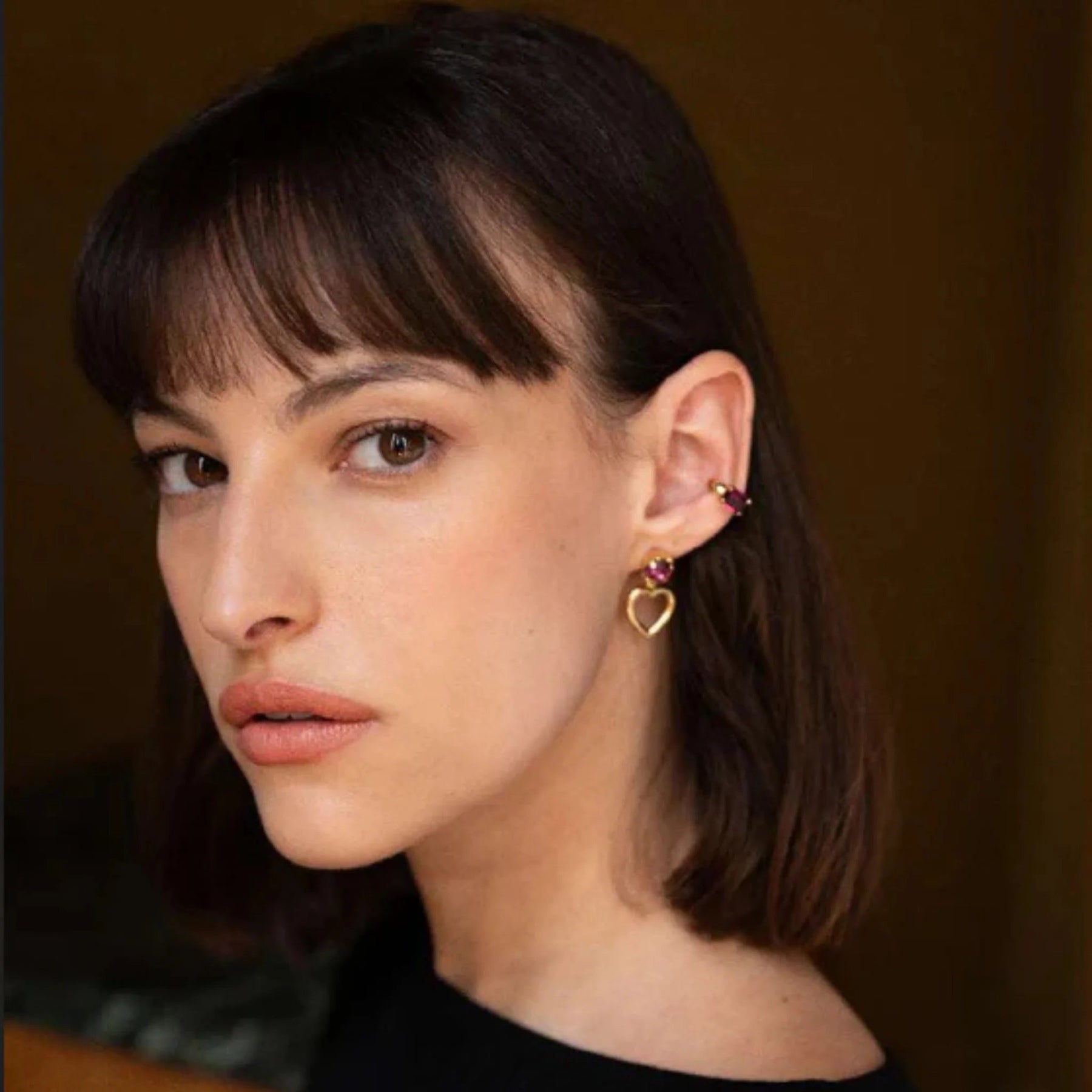 オープンハートのモチーフが軽やかに揺れて、やさしい印象を引き立てます。