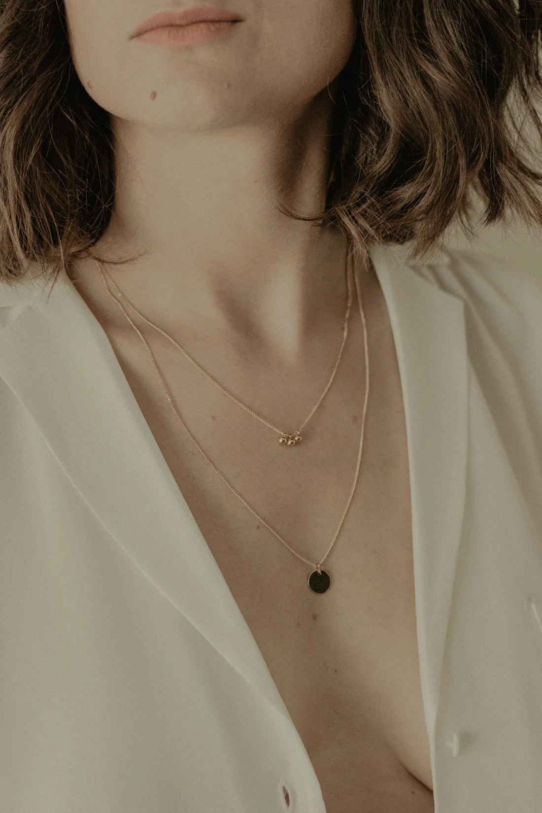 首元を華奢に美しく見せ、ジャケットやシャツの胸元から覗かせるだけでスタイリングが引き締まる存在感。